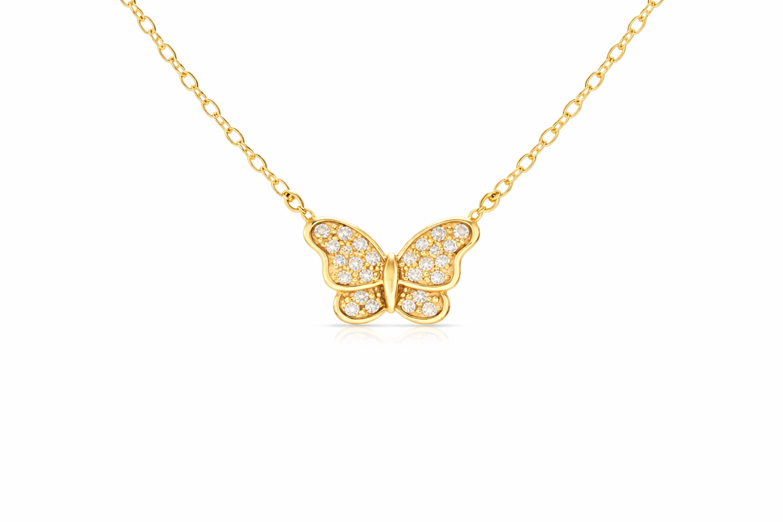 14K YELLOW GOLD DIAMOND BUTTERFLY NECKLACE CONTAINING 26 ROUND BRILLIANT CUT DIAMONDS TOTALING 0.13CTW 18"