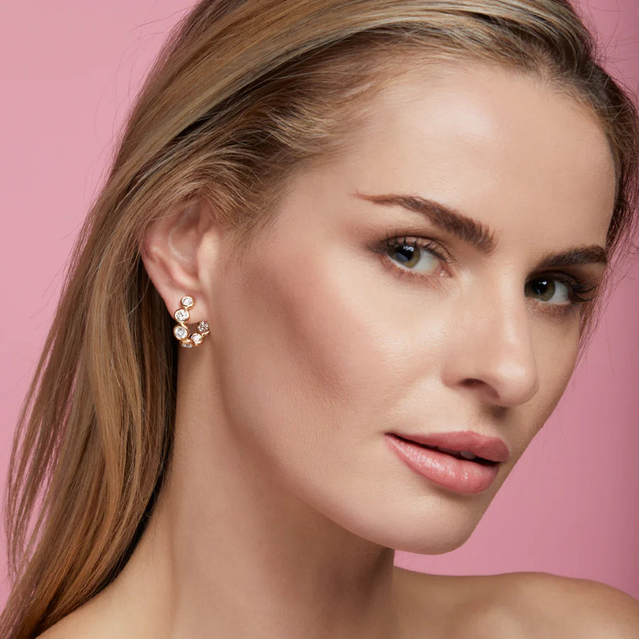 18K YELLOW GOLD DIAMOND NEW MOON CURVE HOOP EARRINGS CONTAINING 14 ROUND BRILLIANT CUT NATURAL EARTH MINED DIAMONDS TOTALING 3 CTTW